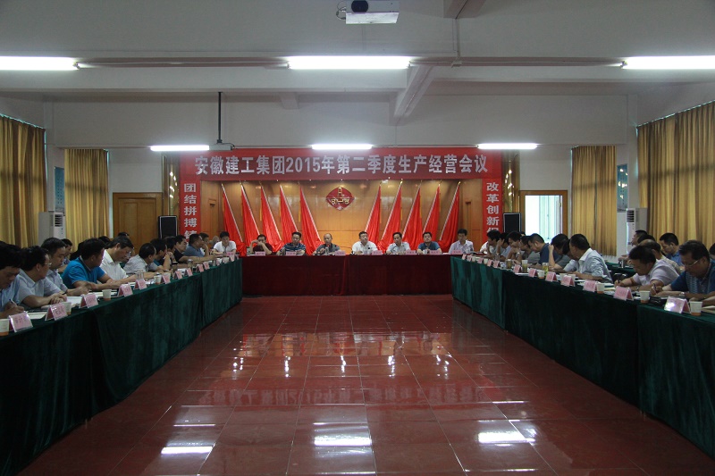 2015年7月15日,安徽建工集團召開(kāi)二季度生產(chǎn)經(jīng)營(yíng)會(huì )議暨7月份總經(jīng)理辦公會(huì )。會(huì )上,集團領(lǐng)導班子成員分別就分管工作以及聯(lián)系點(diǎn)單位工作進(jìn)行了重點(diǎn)部屬。所屬各單位、直屬經(jīng)濟實(shí)體圍繞二季度生產(chǎn)經(jīng)營(yíng)情況及下一步工作計劃作了匯報,機關(guān)相關(guān)部門(mén)對集團上半年有關(guān)經(jīng)濟指標完成情況及重點(diǎn)工作進(jìn)展情況作了通報。會(huì )議由集團公司總經(jīng)理劉家靜主持。