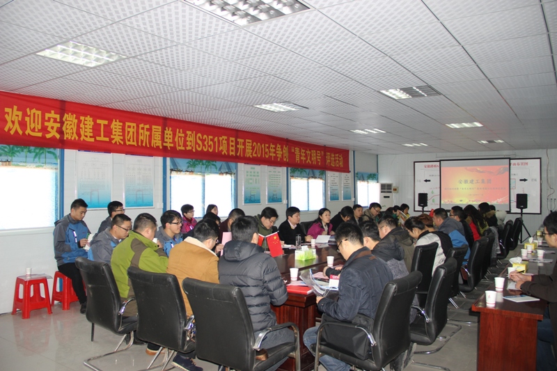 12月29日上午,安徽建工集團2015年度“青年文明號”集體考核評定現場(chǎng)交流會(huì )在安徽路橋S351六安-舒城二期改擴建項目部召開(kāi)。集團公司所屬17家團組織負責人、15個(gè)“青年文明號”創(chuàng )建集體負責人參加會(huì )議。集團公司團委書(shū)記邢應梅主持會(huì )議,安徽路橋公司黨委書(shū)記陳光磊出席會(huì )議并講話(huà)。