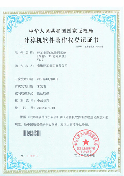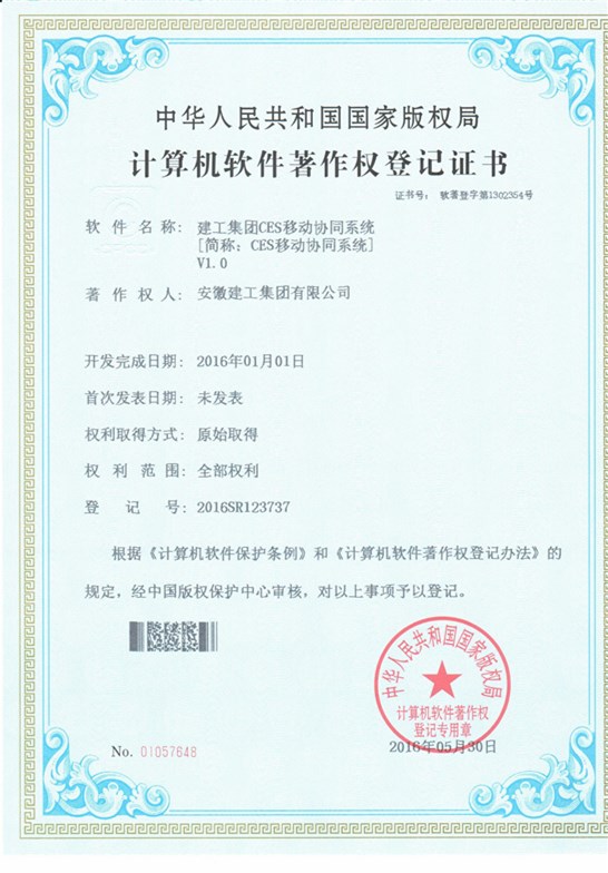 安徽建工集團CES協(xié)同系統獲得兩項軟件著(zhù)作權登記證書(shū)