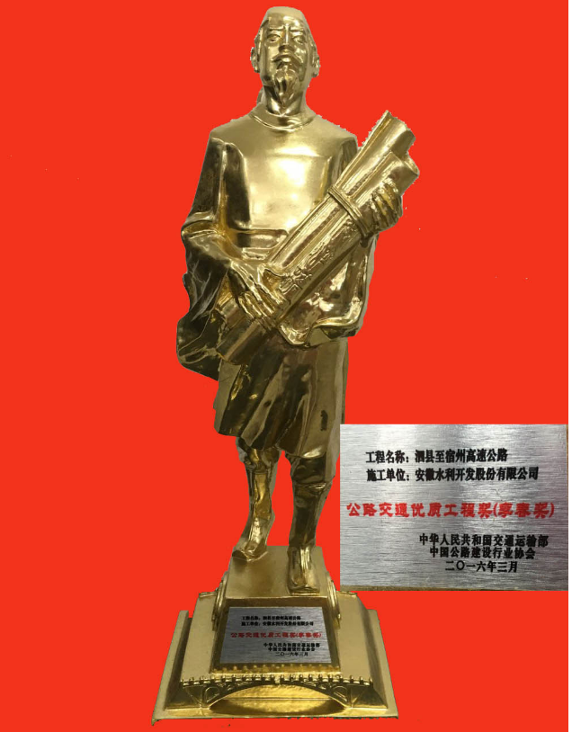 中國公路建設最高質(zhì)量獎——公路交通優(yōu)質(zhì)工程(李春)獎2014-2015年度評選6月19日在北京揭曉,安徽水利施工的泗宿高速公路路基工程06標項目喜獲“李春獎”一等獎,項目經(jīng)理葉明林、項目總工侯帥分別獲得優(yōu)秀項目經(jīng)理及優(yōu)秀項目總工榮譽(yù)稱(chēng)號。