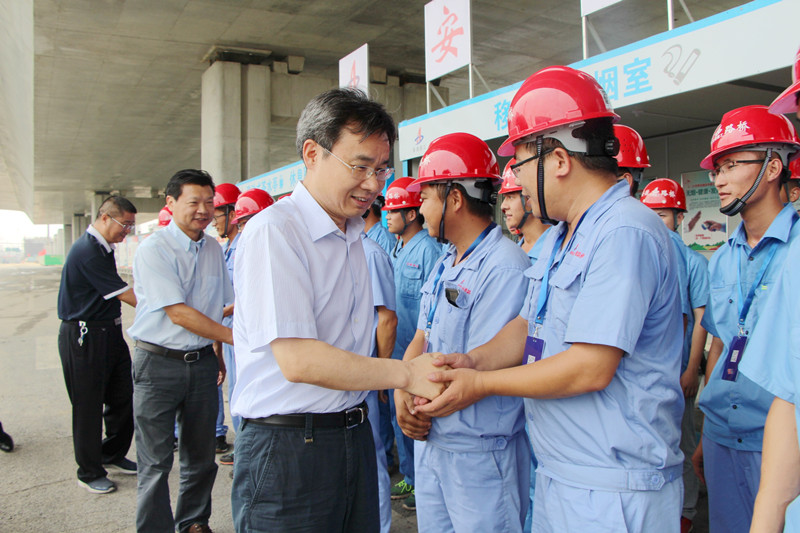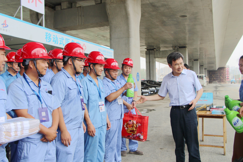 張天培一行與項目部職工一一握手,關(guān)切的叮囑要注意防暑降溫、保重身體。張廳長(cháng)認真聽(tīng)取了項目負責人關(guān)于工程施工情況的匯報,實(shí)地參觀(guān)了施工現場(chǎng)設置的移動(dòng)醫務(wù)室和移動(dòng)茶水亭,仔細詢(xún)問(wèn)防暑降溫各項保障工作,對項目部細致、周密、人性化的防暑降溫保障措施,給予了充分肯定。他要求項目部要妥善安排施工計劃,避開(kāi)高溫時(shí)段,合理安排作息時(shí)間,確保廣大一線(xiàn)建設者人身安全和健康。