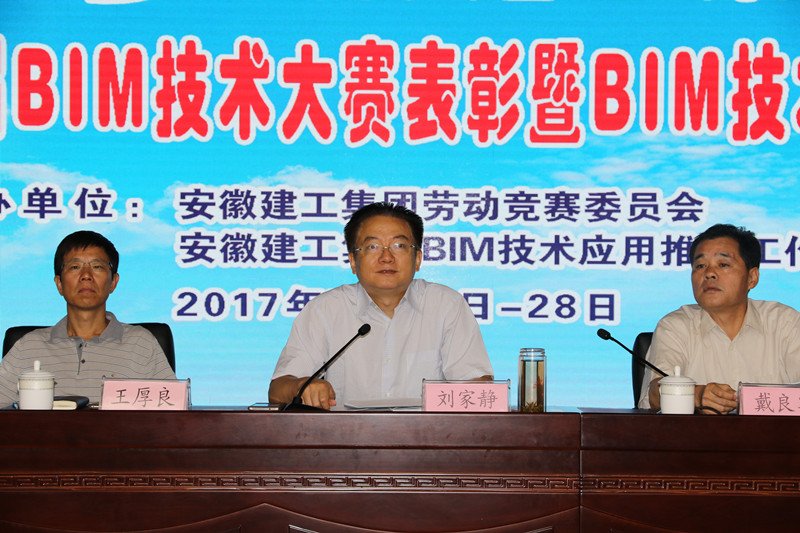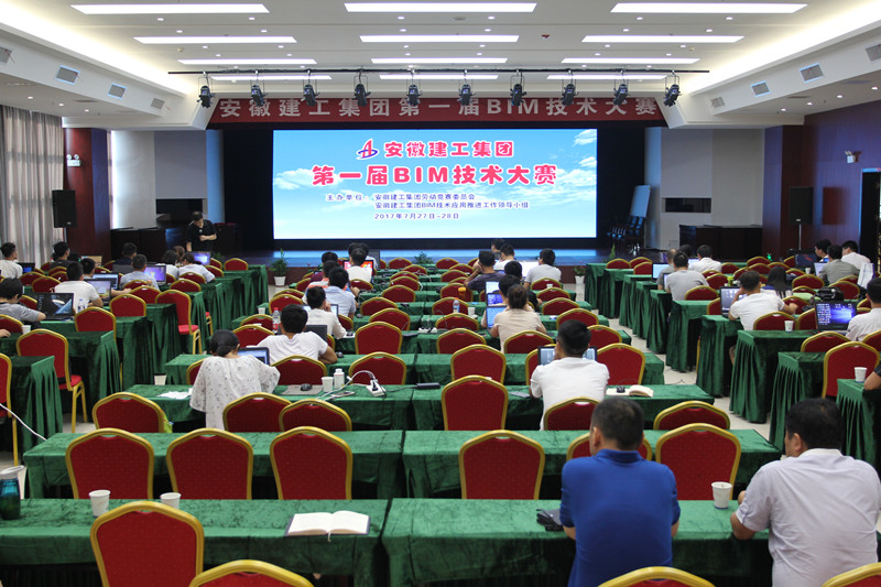 7月27日至28日,由集團勞動(dòng)競賽委員會(huì )及集團BIM技術(shù)應用推進(jìn)工作領(lǐng)導小組舉辦的安徽建工集團第一屆BIM技術(shù)大賽在合肥舉行,來(lái)自基層單位的51名選手參加了比賽。28日上午,集團公司召開(kāi)第一屆BIM技術(shù)大賽表彰暨BIM技術(shù)應用推進(jìn)會(huì ),集團公司領(lǐng)導劉家靜、戴良軍、王厚良、徐曉光出席會(huì )議,省建設建材工會(huì )副調研員葉雪清應邀出席會(huì )議。并為獲獎選手頒獎。集團公司BIM技術(shù)應用推進(jìn)工作領(lǐng)導小組成員、各單位主要領(lǐng)導和分管領(lǐng)導以及從事BIM技術(shù)應用的相關(guān)工程技術(shù)人員代表參加會(huì )議。
