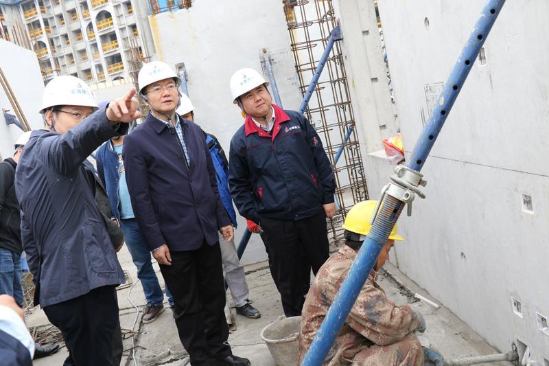 劉家靜一行首先來(lái)到錦繡花園•桃花園項目施工現場(chǎng),實(shí)地查看項目實(shí)施進(jìn)展情況,就現場(chǎng)住宅產(chǎn)業(yè)化施工安全、質(zhì)量、進(jìn)度等相關(guān)情況進(jìn)行了解,并對現場(chǎng)6號樓施工具體情況進(jìn)行仔細查看。從一層到六層,劉總逐層查看,特別是在住宅產(chǎn)業(yè)化轉換層,對樓層接縫處理以及外掛架的安全性能等情況細致檢驗,并反復叮囑現場(chǎng)施工人員,在施工過(guò)程中要責任當前,力爭打造出一流的建筑品質(zhì)。