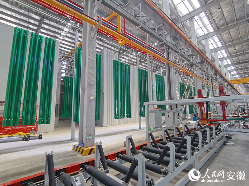 以波形梁護欄為例,該產(chǎn)品生產(chǎn)制作并不復雜,但由于皖北皖中皖南氣候條件不同,對產(chǎn)品防腐工藝要求極高。在產(chǎn)業(yè)園一期,已經(jīng)配備全自動(dòng)公路波形護欄板冷彎成型生產(chǎn)線(xiàn)、熱鍍鋅生產(chǎn)線(xiàn)及噴粉復合生產(chǎn)線(xiàn),其中全自動(dòng)噴粉復合生產(chǎn)線(xiàn)采用積放鏈輸送工藝,集成國內外先進(jìn)設計理念,實(shí)現環(huán)氧鋅基與熱鍍鋅噴塑雙防腐工藝兼容,工件從下件到覆膜包裝全程自動(dòng)化,智能化水平位居全國前列。