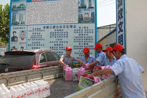 今年7月份以來(lái),受副熱帶高壓影響,我省天氣晴熱,合肥地區持續高溫。為緊密?chē)@高溫時(shí)期工作重點(diǎn),積極配合施工生產(chǎn),做好高溫時(shí)期的安全生產(chǎn)工作,三建公司團委在8月14日組織青年志愿者,分別前往合肥市七中搬遷工程、中國科學(xué)技術(shù)大學(xué)研發(fā)試驗樓工程、力高共和城傾城水鄉西四期工程等三個(gè)項目部,開(kāi)展“1+1”志愿服務(wù)活動(dòng),即以一線(xiàn)班組農民工為服務(wù)對象,開(kāi)展一次高溫安全教育,進(jìn)行一次防暑慰問(wèn)。同時(shí),號召所屬團支部、直屬項目部組織志愿者,結合各單位、各項目部工作實(shí)際,積極開(kāi)展“1+1”志愿服務(wù)活動(dòng)。