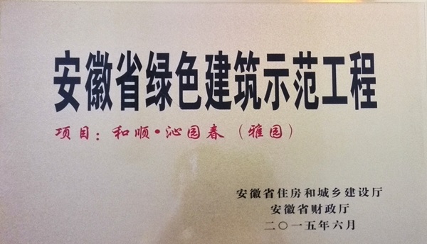 日前,安徽水利六安和順“沁園春”雅園項目被安徽省住房和城鄉建設廳評為“安徽省綠色健康示范工程”,成為六安市首家榮獲省級綠色建筑示范工程的住宅小區。和順·沁園春小區也成為六安地區首個(gè)以“綠色·低碳·健康”為主題的高檔小區,有效提升了安徽水利和順地產(chǎn)品牌形象。