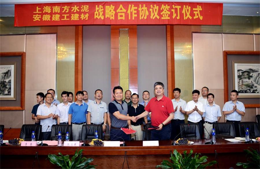 2015年8月27日上午10點(diǎn)38分,安徽建工建筑材料有限公司與上海南方水泥有限公司在合肥舉行戰略合作框架協(xié)議簽訂儀式。建工建材執行董事、總經(jīng)理張鍵,黨總支書(shū)記張衛東,副總經(jīng)理徐友修,上海南方水泥執行總裁戴愛(ài)榮等出席了簽訂儀式。雙方協(xié)商同意按照“誠信經(jīng)營(yíng),互利雙贏(yíng)”的原則,將在水泥領(lǐng)域開(kāi)展長(cháng)期穩定合作,并就商品混凝土等共同關(guān)心的話(huà)題進(jìn)行了討論。